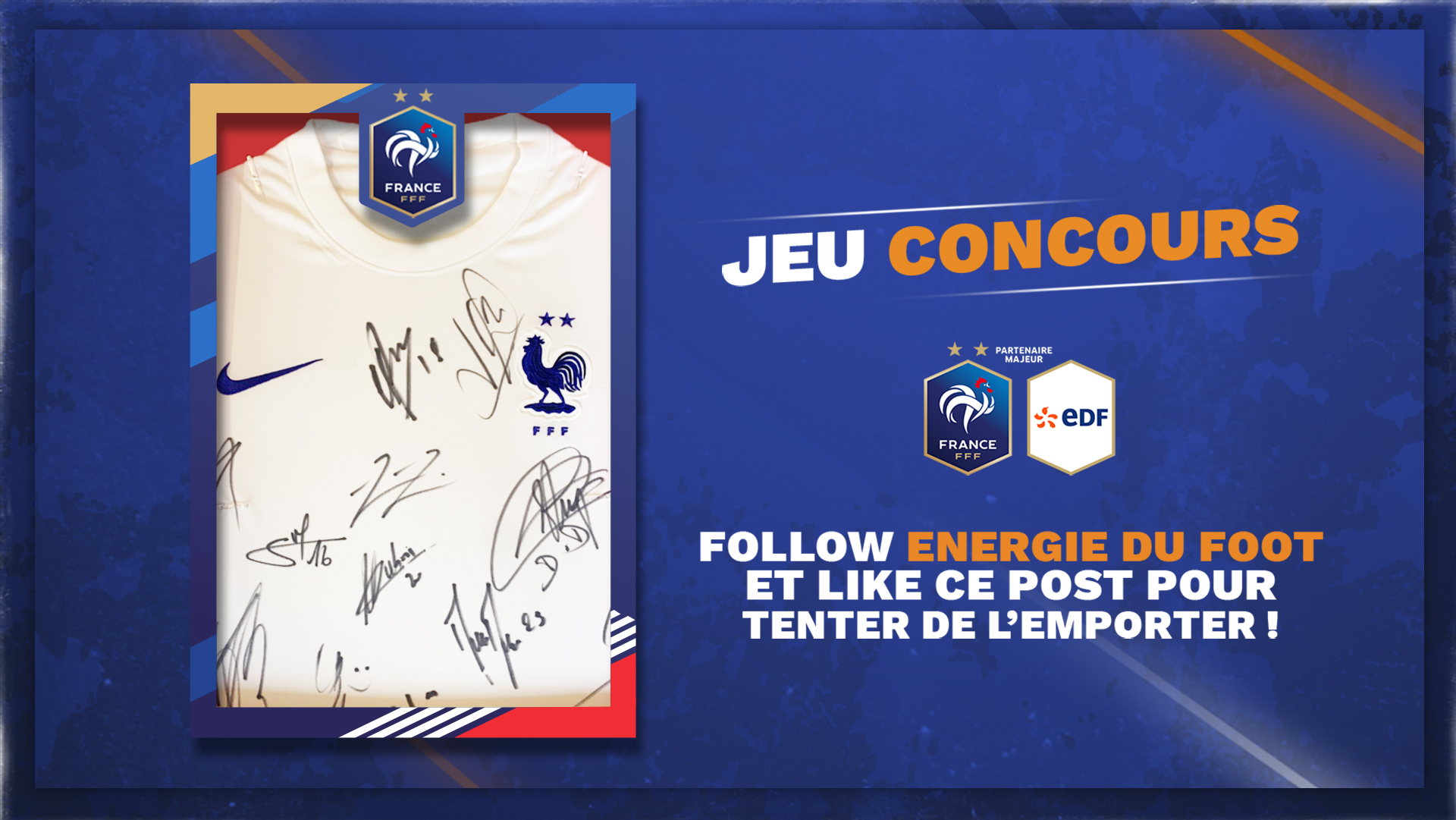 🎁 𝐉𝐄𝐔 𝐂𝐎𝐍𝐂𝐎𝐔𝐑𝐒 🎁 Pour tenter de gagner un coffret collector du nouveau maillot de l’Équipe de France dédicacé par les joueurs : 1️⃣ Like cette publication 2️⃣ Follow le compte @energiedufoot Tirage au sort le 1er juin à 18h ! Bonne chance à tous 🤞 #EnergieduFoot