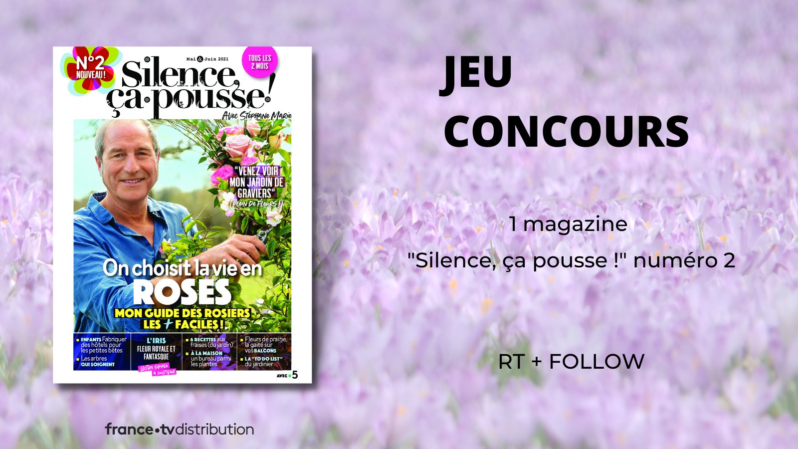 [JEU CONCOURS] En manque d’inspiration pour fleurir votre jardin ? 🤔 Tentez votre chance de gagner le magazine numéro 2 de l’émission @France5tv « Silence, ça pousse ! » et faites le plein d’idées ! 🌼🌺 RT + FOLLOW Résultats le 31/05 #burdableu Lancé par @FranceTvDistrib