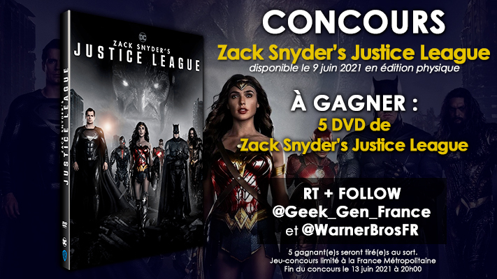 #CONCOURS 🎁 ! A l'occasion de la sortie du film Zack Snyder's Justice, Geek Gen et Warner Bros. vous offrent 5 DVD du film. Pour participer, FOLLOW + RT @Geek_Gen_France et @warnerbrosfr Bonne chance à tous 🍀 #Giveaway #JusticeLeagueSnyderCut #JusticeLeague #dccomics