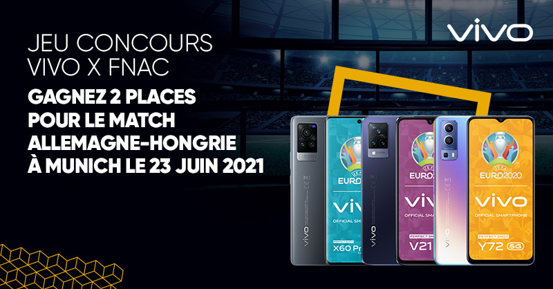 💥 JEU CONCOURS @vivomobile_fr X Fnac | Tentez de gagner 2 places pour le match Allemagne-Hongrie à Munich le 23 juin prochain ! ⚽ Pour participer : RT + follow @Fnac et @vivomobile_fr. Bonne chance 🍀 https://t.co/wWqervf6nB Fin du jeu 15/06 23H59