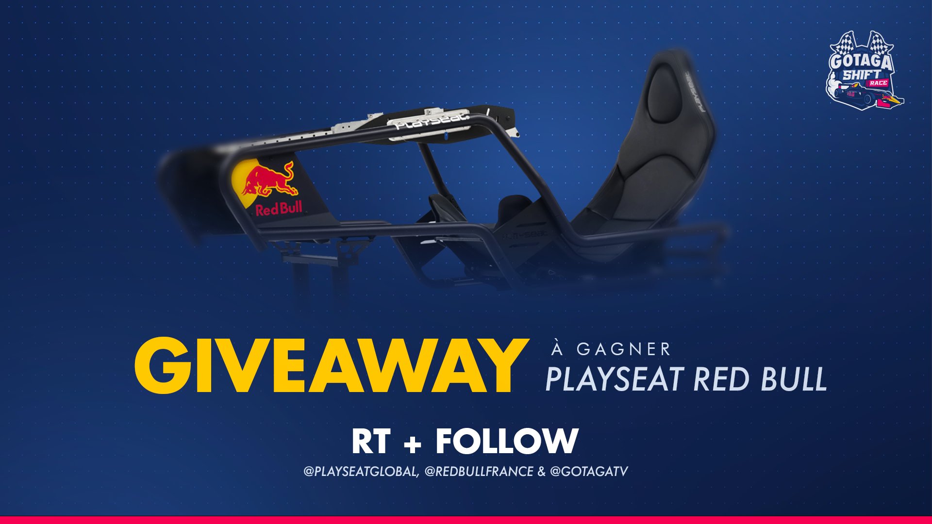 A l'occasion de notre Grande Finale du #GotagaShiftRace, on vous fait gagner ce Playseat Red Bull ! 🎁 #RT & #Follow @GotagaTV, @RedBullFrance & @PlayseatGlobal pour tenter de remporter le siège ! 🎁 TAS le 28/06