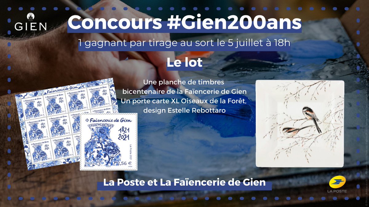 • 1 planche de timbres du bicentenaire de la Faïencerie de Gien avec un porte-carte XL