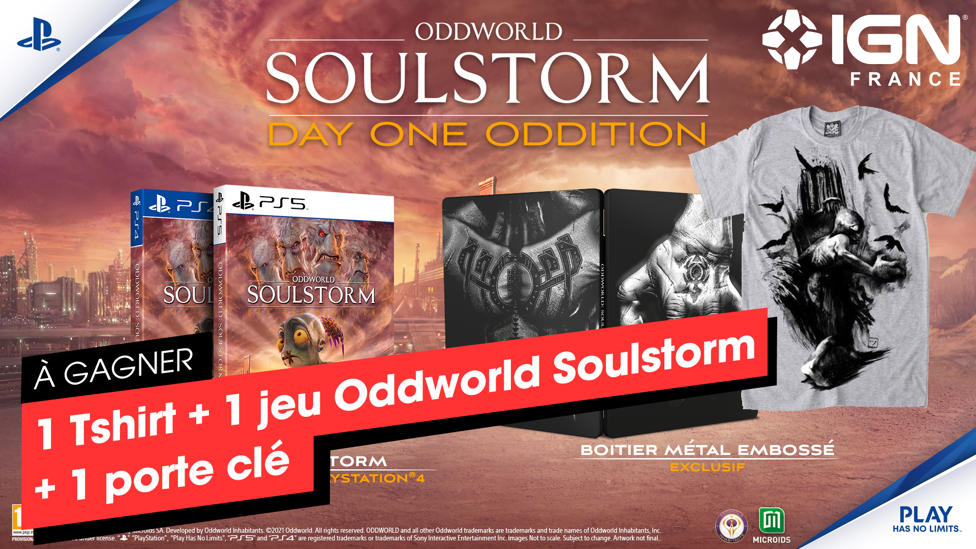 Oddworld Soulstorm lance sa Day One Oddition chez @Microids_off ! 🔥 Et on vous la fait gagner 🎁 ✅RT+Follow @IGNFRA pour participer : 1 jeu Oddworld Soulstorm Day One Oddition + 1 Tshirt + 1 porte clé 3 gagnant.e.s, tirage au sort lundi 12 à 17h