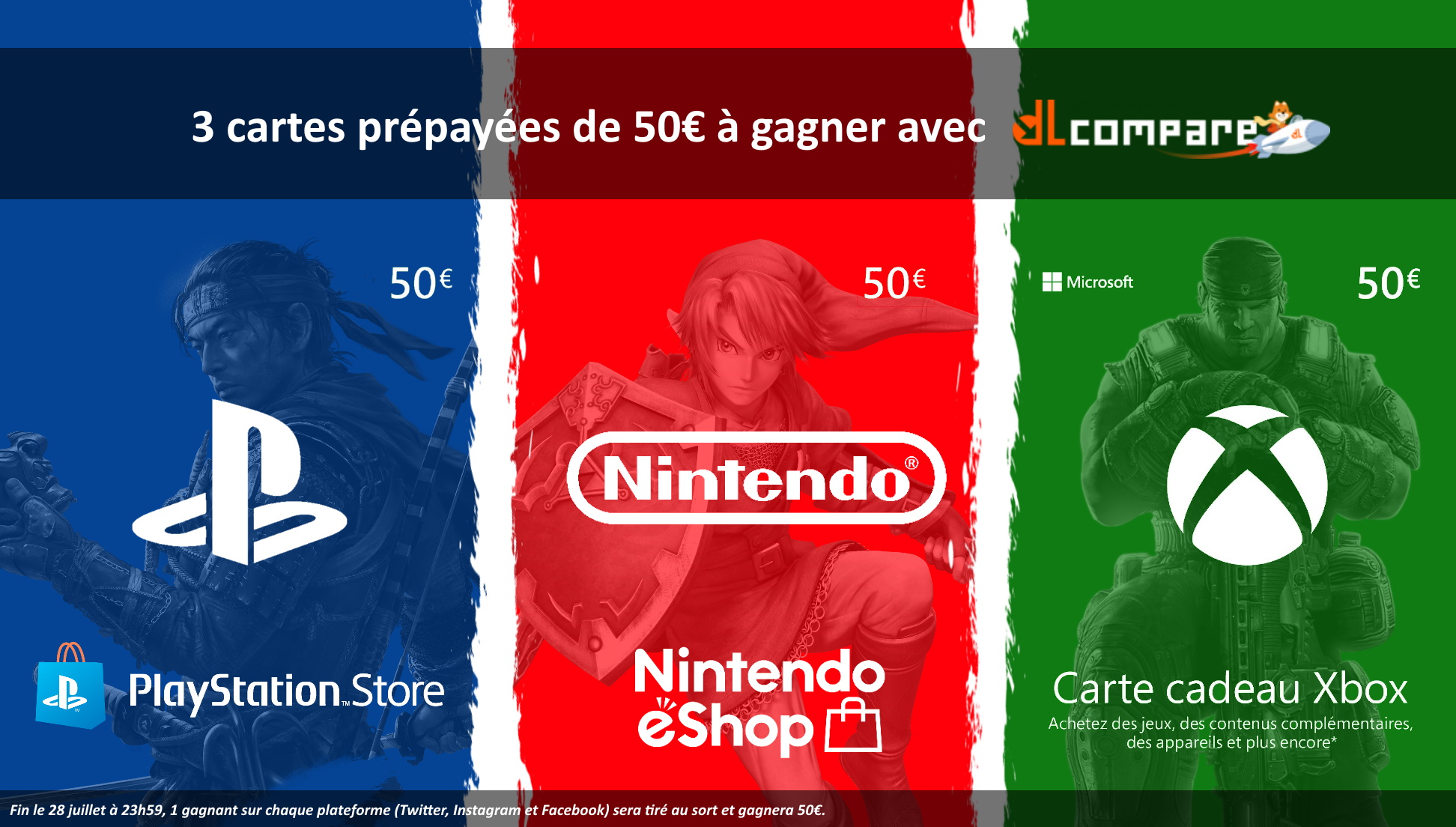 • 3 cartes de 50€ sur le PlayStation Store, Nintendo eShop et Xbox Live