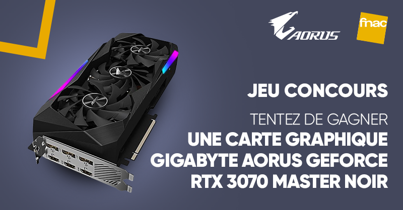 Jeu Fnac n°326287 pour gagner 1 carte graphique Gigabyte Aorus GeForce RTX 3070 Master (1890 euros)