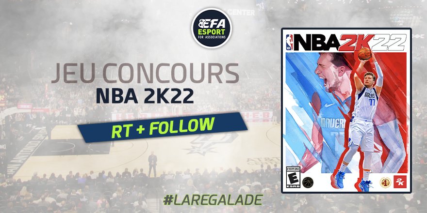 C'est #LaRégalade 🤩 Tentez de gagner le jeu #NBA2K22 sur la plate-forme de votre choix ! 1️⃣ RT le tweet du #Concours 2️⃣ Follow @EsportFA_FR 🎲TAS le 10 Septembre 2021 #ESPORTFA22 🏀