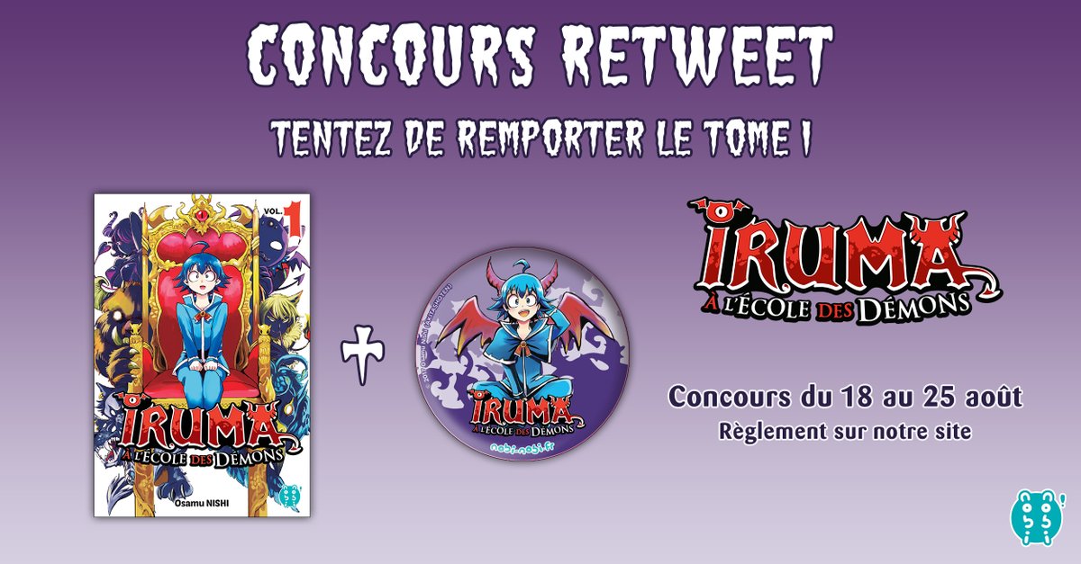 [CONCOURS RT] IRUMA À L'ÉCOLE DES DÉMONS ⭐️ C'est bientôt la rentrée ! Pour une rentrée pleine de folies, nous vous proposons un jeu-concours pour tenter de remporter le tome 1 de la série + un badge Iruma !⭐️ 1. Abonnez-vous à @nobi__nobi, 2. Likez et RT jusqu'au 25/08