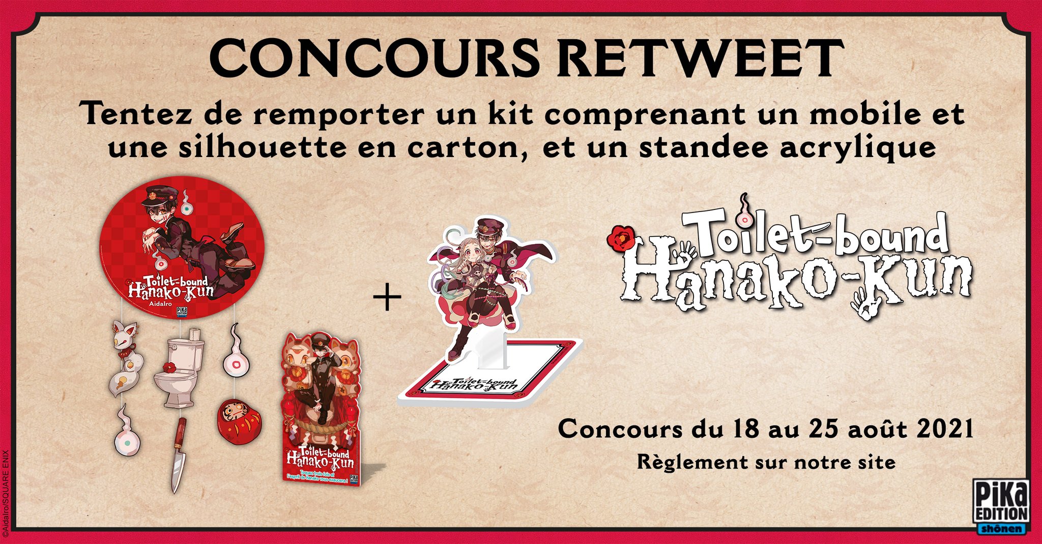 • 1 kit du manga "Toilet-bound Hanako-kun" composé de 1 mobile + 1 silhouette en carton + 1 standee acrylique