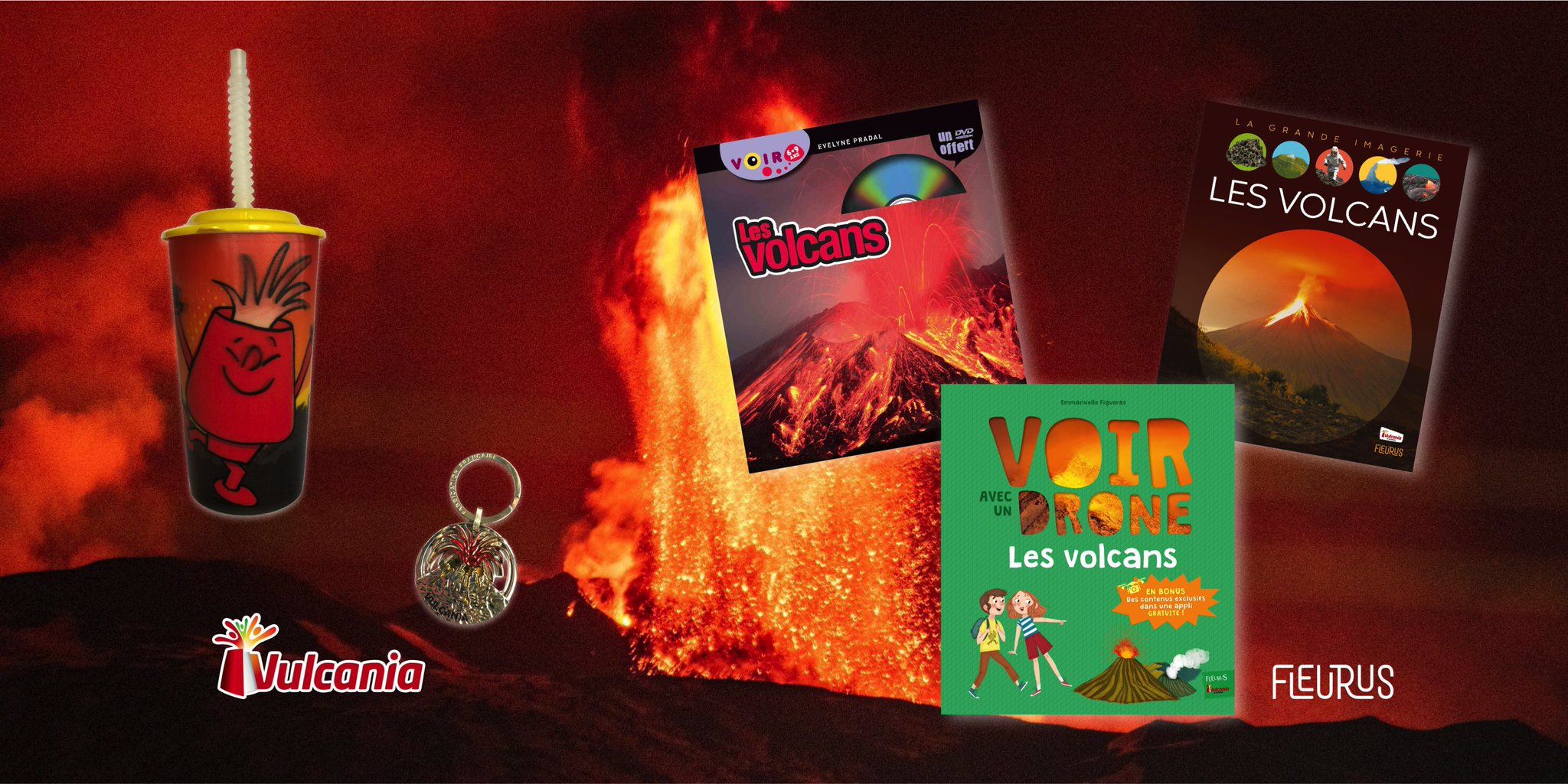 Jeu Remi Prieur n°327152 pour gagner 3 livres sur le thème des volcans , 1 gobelet et un porte-clés Vulcania