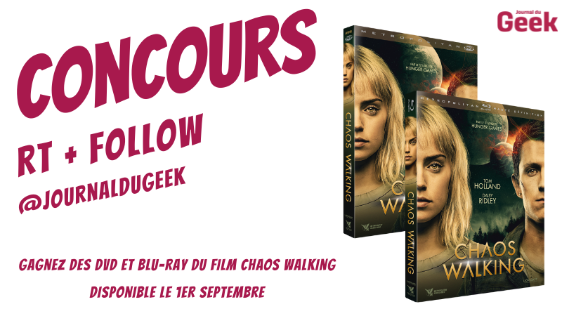 🎁#CONCOURS#🎁 Tentez de gagner des DVD et Blu-ray du film #ChaosWalking disponible le 1er septembre ! 👉Pour participer : RT & Follow @journaldugeek 👍Découvrez la bande-annonce : https://t.co/U8rG2VrOvG 🍀Bonne chance à tous !