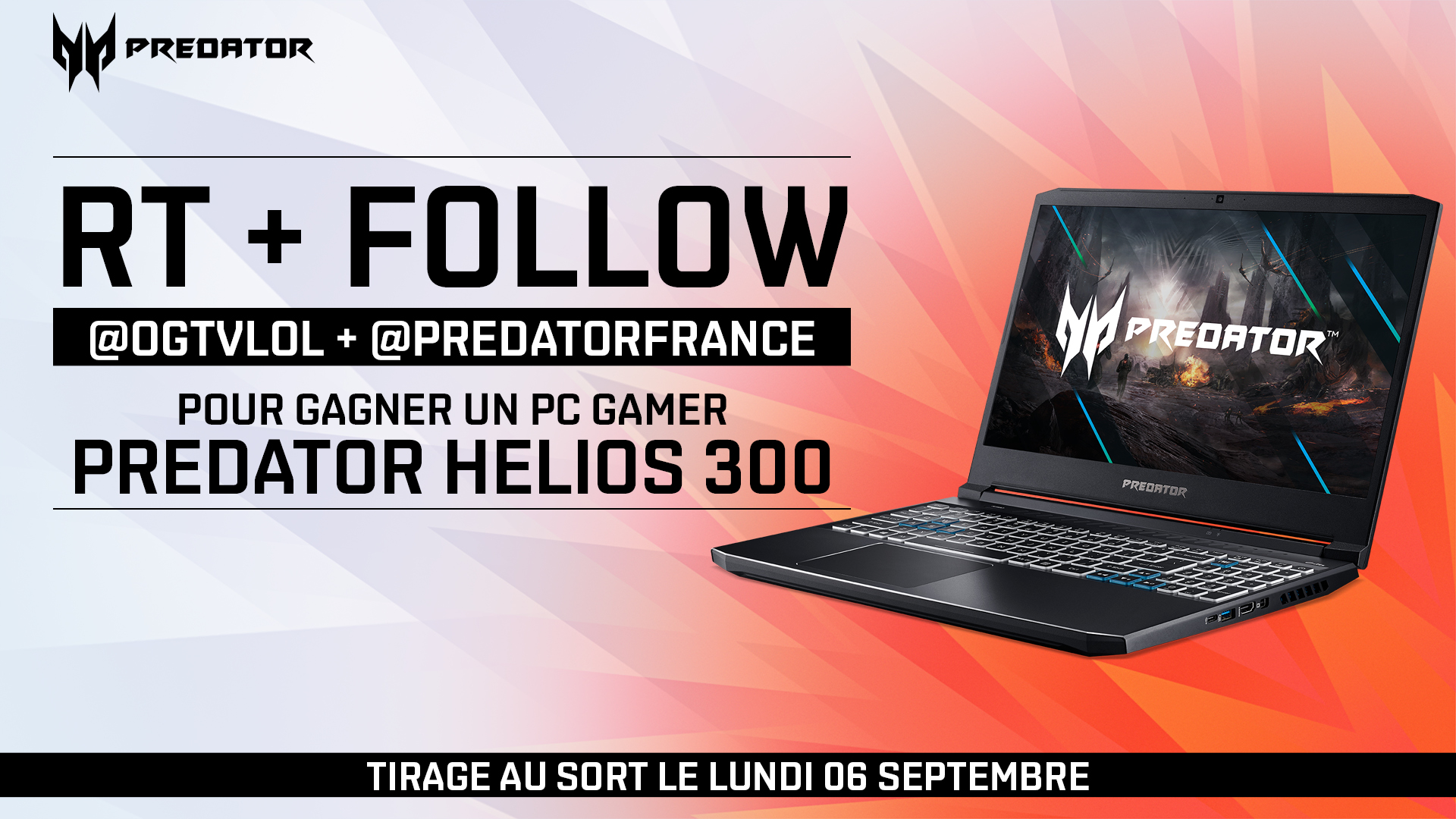 Quand c'est fini, y'en a encore ! 🥵 Nouvelle chance de gagner ce PC gamer Predator Helios 300 ! 🔹 RT ce tweet 🔹 Follow @OGTVLoL + @PredatorFrance TAS le 6 septembre 2021