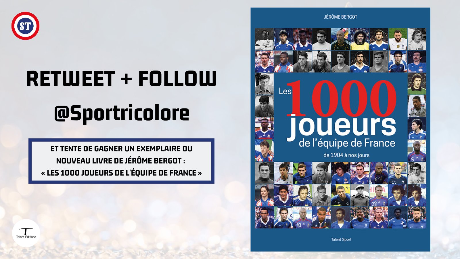 🇫🇷 JEU CONCOURS 🚨 À l'occasion du match #BELFRA, on vous fait gagner un exemplaire du nouveau livre de Jérôme Bergot : « Les 1000 joueurs de l'équipe de France » 🎁 ✅ RT + FOLLOW @sportricolore pour participer au concours ‼️ 🍀 TAS le 14/10