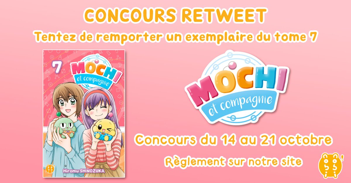 [CONCOURS RT] MOCHI ET COMPAGNIE ⭐️ À l'occasion de la sortie du dernier tome de "Mochi et compagnie", en librairie le 20 octobre, nous vous proposons un jeu-concours pour tenter de remporter un exemplaire du tome 7⭐️ 1. Abonnez-vous à @nobi__nobi, 2. Likez et RT jusqu'au 21/10