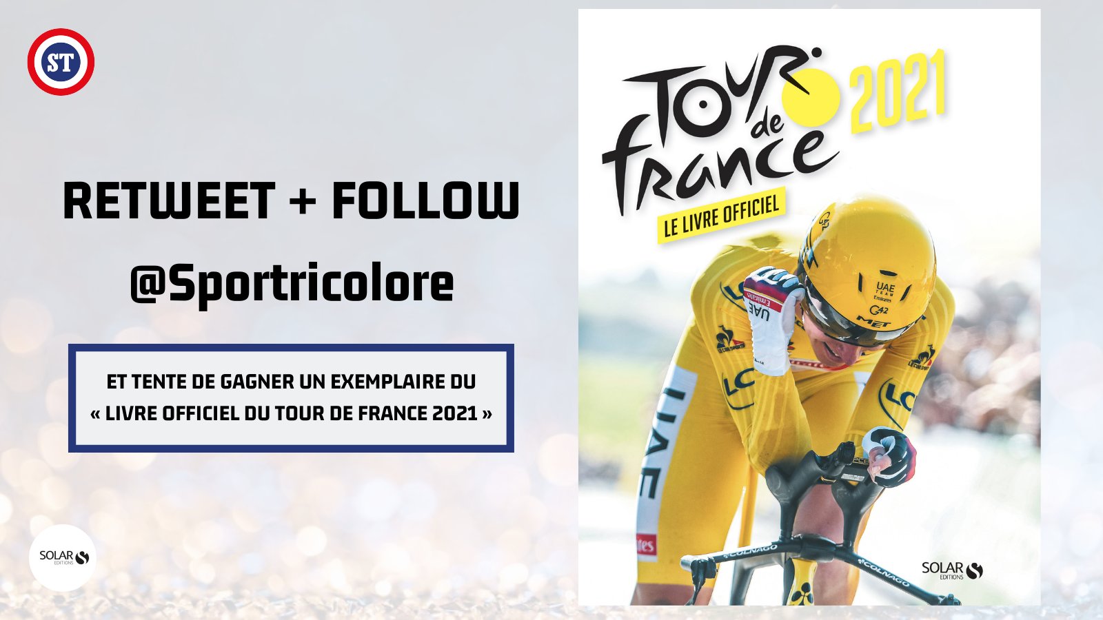 🇫🇷 JEU CONCOURS 🚨 On vous fait gagner un exemplaire du nouveau livre officiel du Tour de France 2021 🎁 ✅ RT + FOLLOW @sportricolore pour participer au concours ‼️ 🍀 TAS le 21/10 #TDF