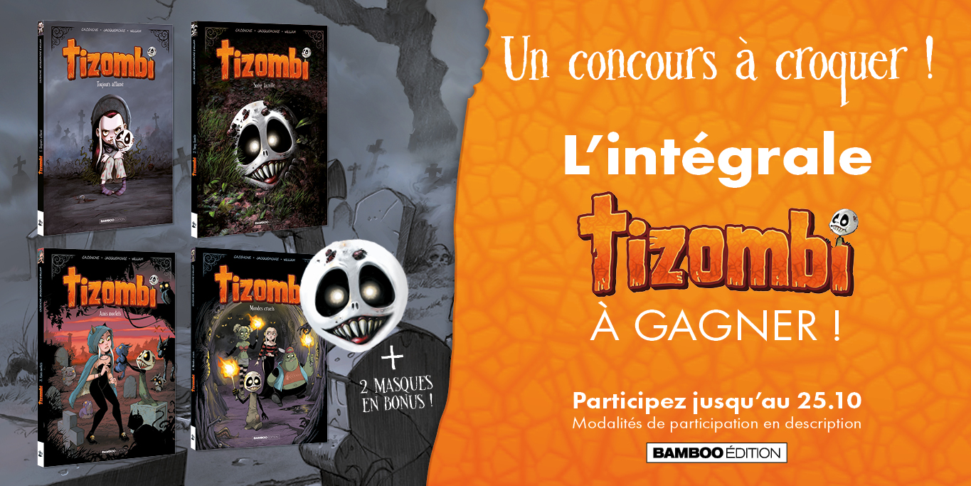 Pour #Halloween, voici un #concours qui ne manque pas de mordant ! 🎃 RT & follow pour tenter de gagner les 4 tomes de Tizombi + deux masques en bonus, jusqu'au 25/10 Bonne chance à tous !