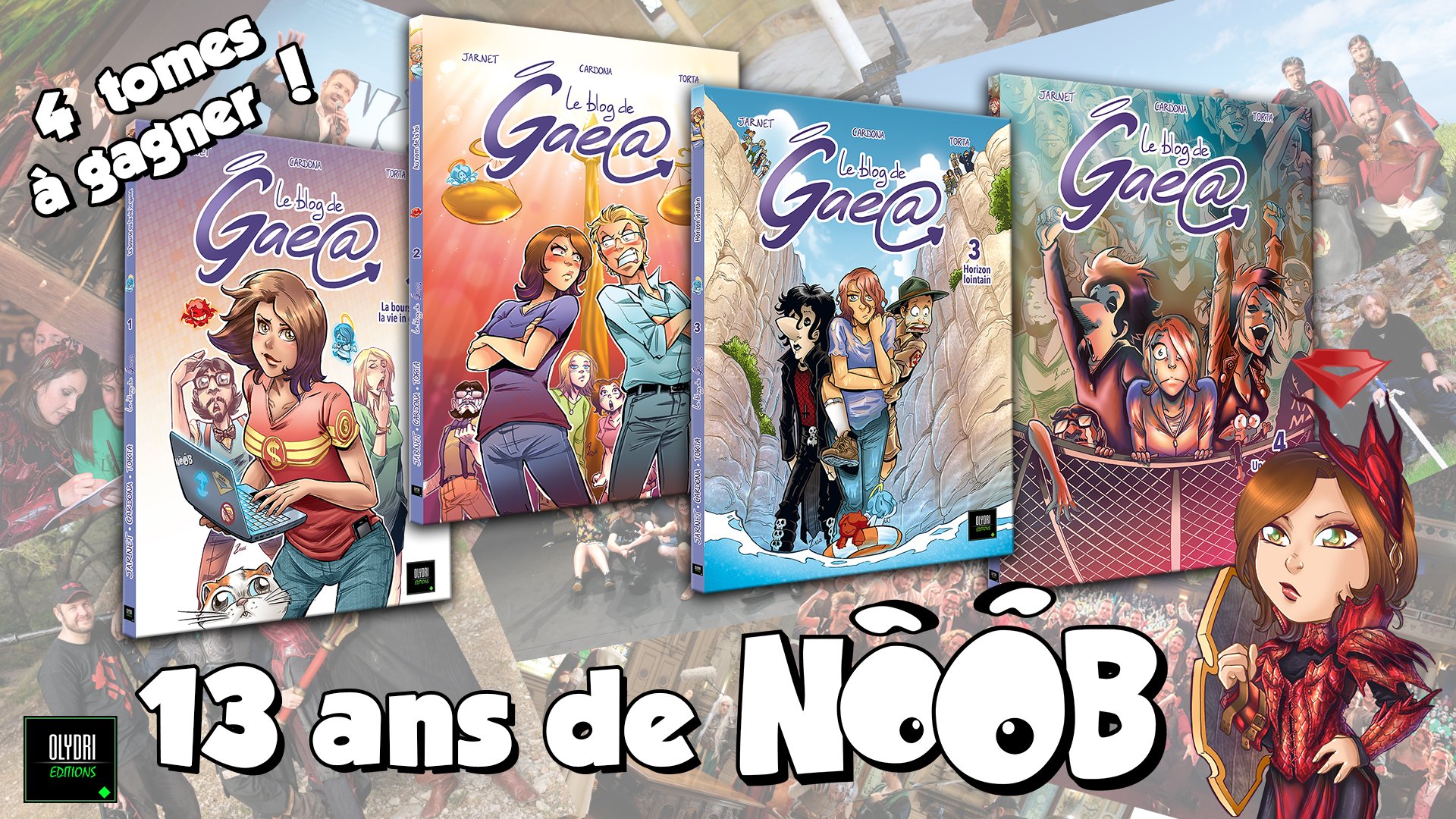 Pour l'anniversaire des 13 ans de NOOB 🎂, je fais gagner les 4 tomes de la BD Blog de Gaea, l'aventure IRL des Noob ! Pour participer il suffit de RT + FOLLOW @gaeaguildenoob et @Olydri_Noob ! 🤓 Tirage au sort du gagnant lundi 15 novembre.