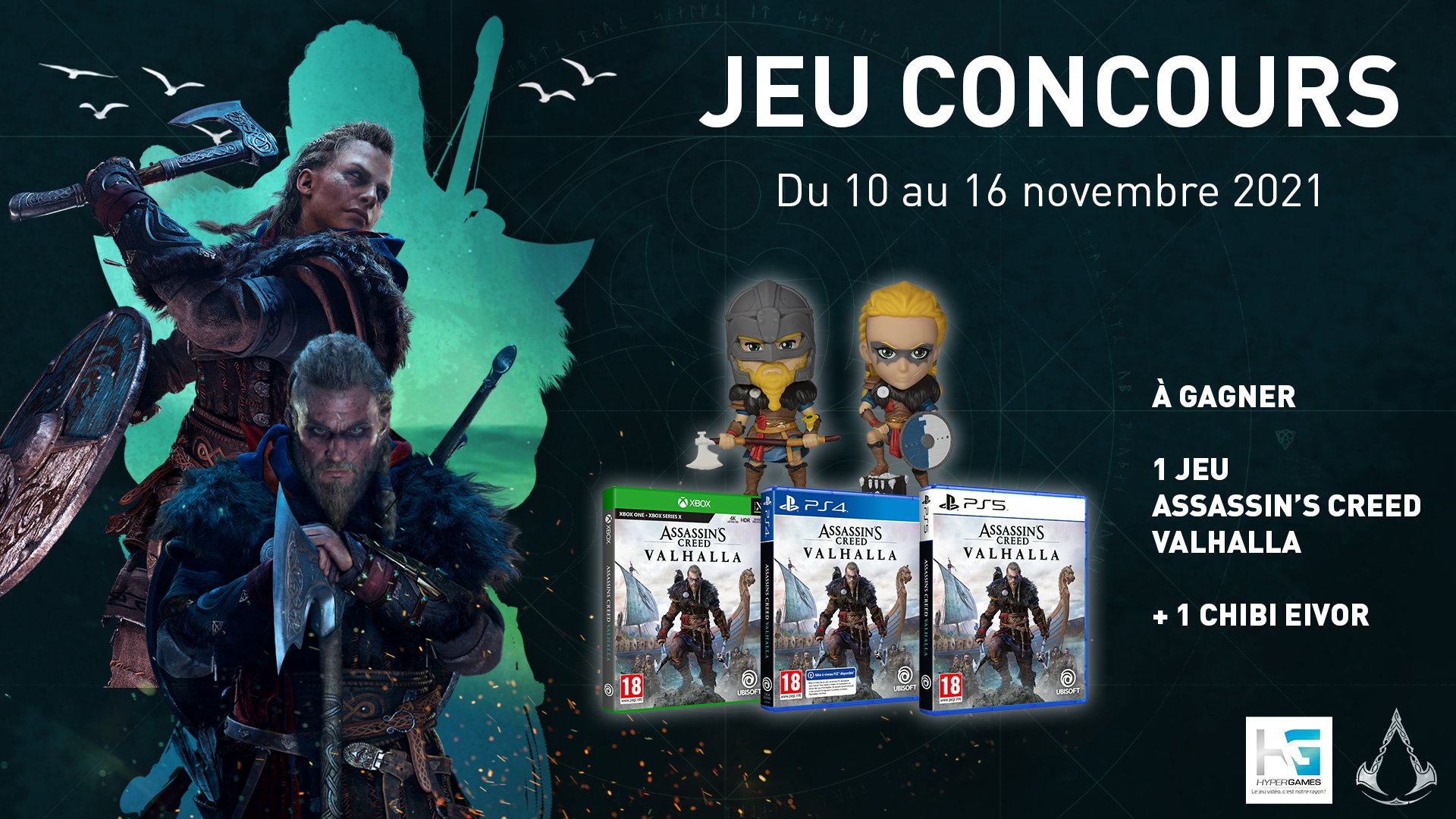 • 3 lots composés de 1 jeu vidéo "Assassin's Creed Valhalla" sur la plateforme de votre choix + 1 figurine Chibi Eivor