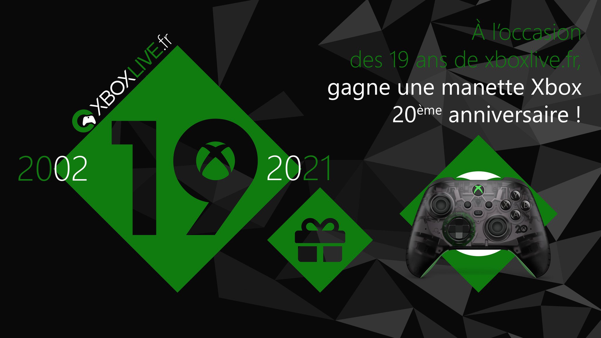 [#Giveaway 🎁] Concours spécial ! Nous vous offrons une Manette sans fil Xbox – Édition spéciale 20e anniversaire Pour tenter de remporter le lot mis en jeu : 🟩Follow @Xboxlivefr 🟩RT ce tweet TAS 21/16 🍀