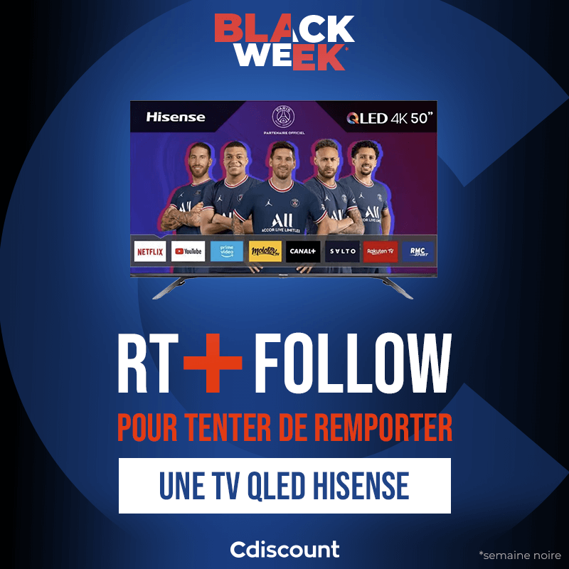 🎁 #Concours ⚫ On fête la Black Week sur Cdiscount avec une TV Hisense QLED à gagner ➡ https://t.co/m0Le0ouoJs Pour tenter ta chance : 🔸 RT ce tweet 🔹 Follow @Cdiscount ⏰ TAS 24/11