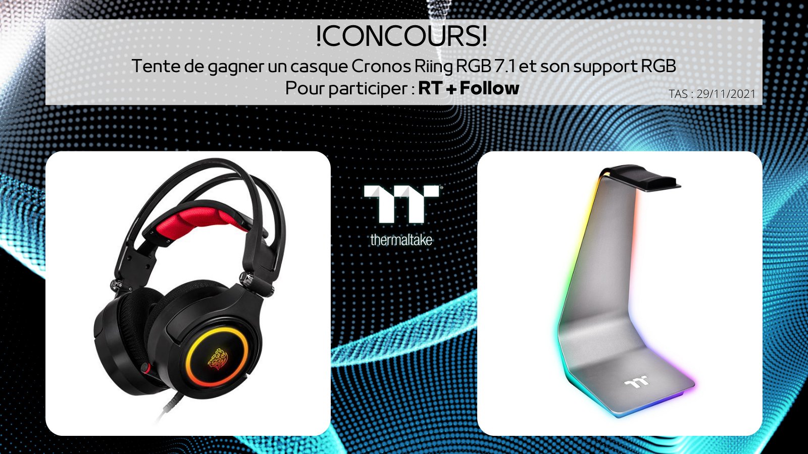 #CONCOURS ! 🥳 Noel approche, on prend de l'avance en vous donnant une chance de gagner un casque Cronos Riing RGB 7.1, ainsi que son support également RGB🌈 Pour participer : #RT + #Follow @thermaltake_fr
