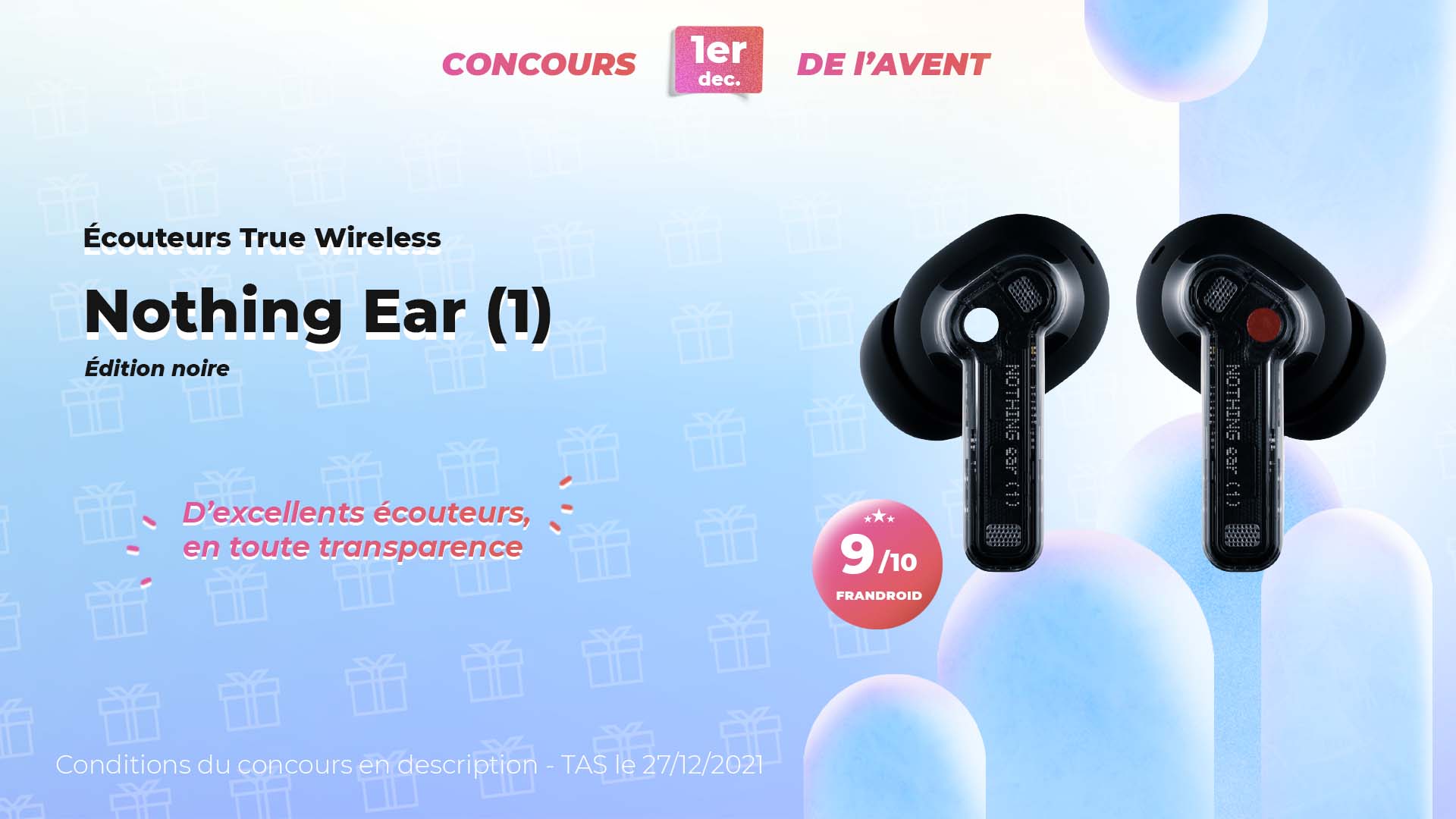 CONCOURS 🎅 Notre grand calendrier de l'avent commence aujourd'hui ! 🥳 Gagnez des écouteurs true wireless Nothing Ear (1) Black 🎶 Pour participer : 1️⃣ Tweet #FrandroidOffreMoi les Nothing Ear (1) Black 2️⃣ RT + Like 3️⃣ Follow @Frandroid + @nothing TAS 27/12 🎉