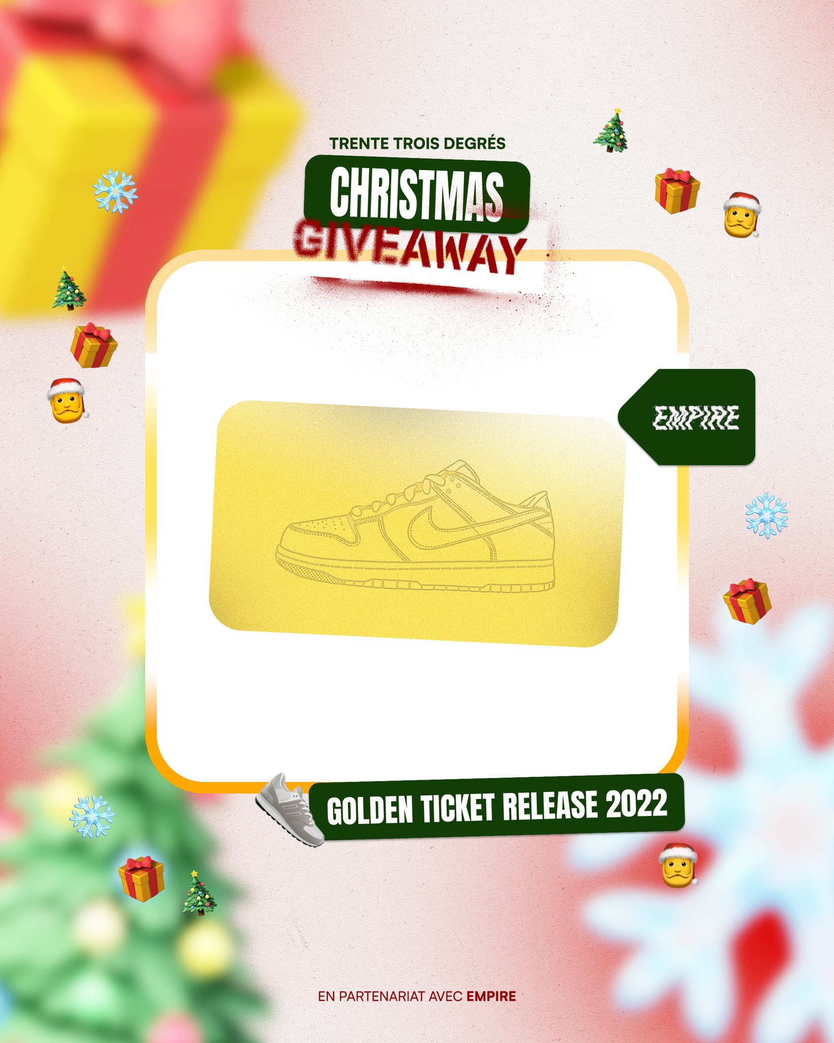 🎄 On vous offre un golden ticket qui vous offrira la paire de Nike Dunk SB de votre choix en 2022 avec Empire ! Pour participer : 1. RT + FOLLOW @33degres 2. Mentionne 2 personnes de ton choix Double tes chances en participant également sur Instagram @/trentetroisdegres 🎁