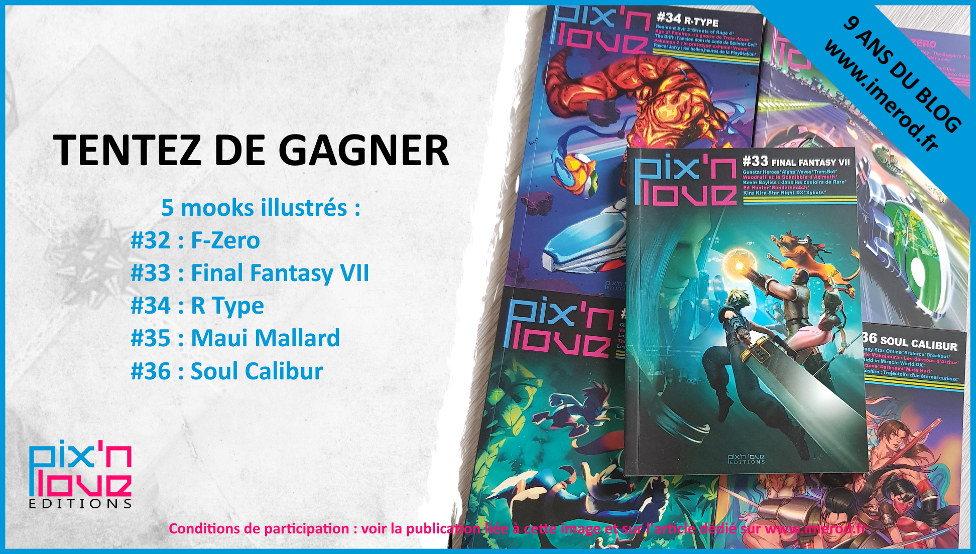 🔥#CONCOURS 9 ans du blog 🔥 Tentez de gagner 5 mooks illustrés de chez Pix'n'Love. Pour participer : - RT+Follow @imerodBlog & @Pixnlove - Tag un ami Participez aussi sur le blog et insta : ⤵️ https://t.co/7AapN7YEuN #FFVII #SoulCalibur #FZero #RType