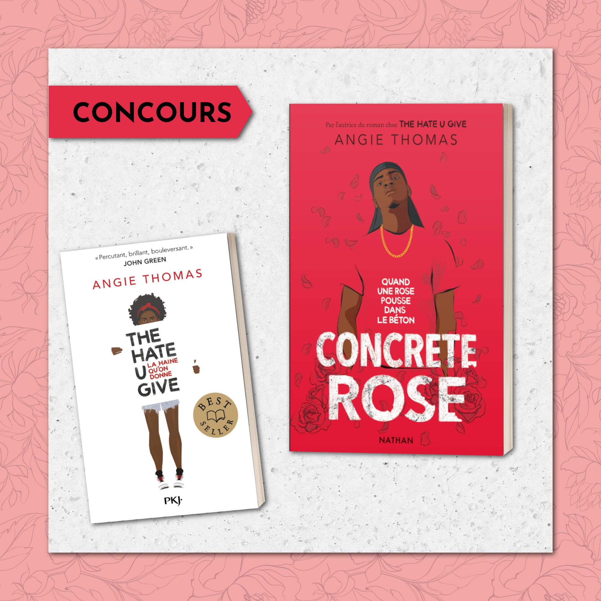 • 1 lot composé de 1 roman "Concrete Rose" d'Angie Thomas + 1 exemplaire poche de "The Hate U Give"