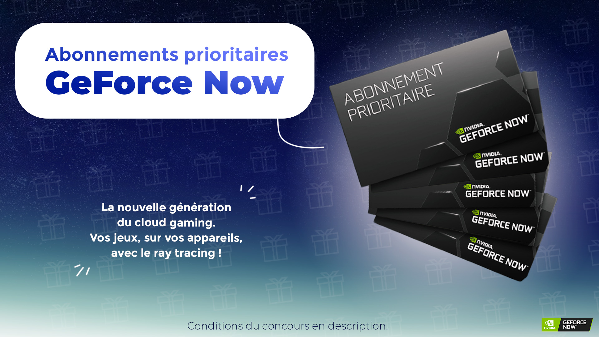 • 5 abonnements prioritaires de 2 mois au Cloud Gaming GeForce Now