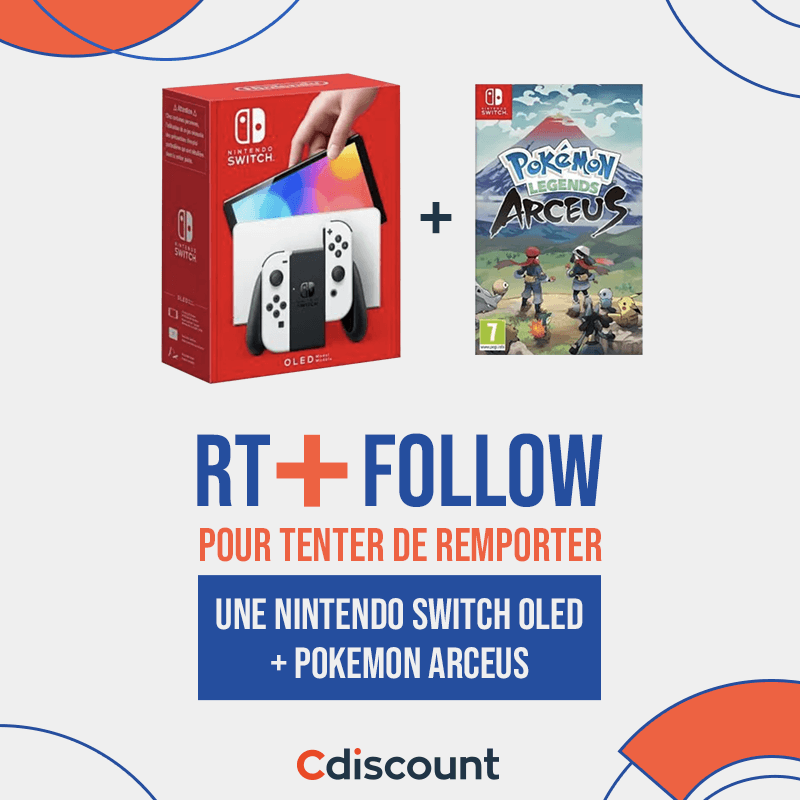 🎁 #Concours On fête la sortie de Légendes : Pokemon Arceus avec un jeu + une Nintendo Switch OLED à gagner ➡ https://t.co/74ywYjc3Xi Pour tenter ta chance : 🔸 RT ce tweet 🔸 FOLLOW @Cdiscount 🍀 TAS 03/02