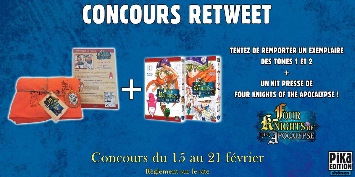 • 2 lots composés de 1 kit presse + les tomes 1 et 2 du manga "Four Knights of the Apocalypse" valeur 28 €