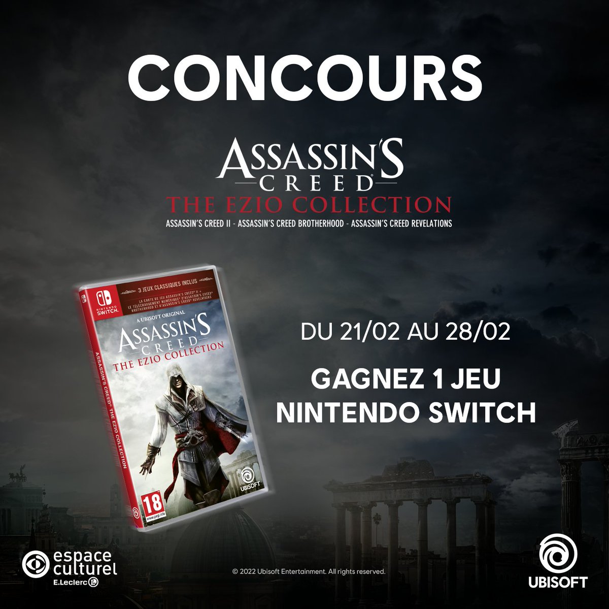 • 1 jeu vidéo "Assassin's Creed - The Ezio Collection" sur Switch valeur 50 €