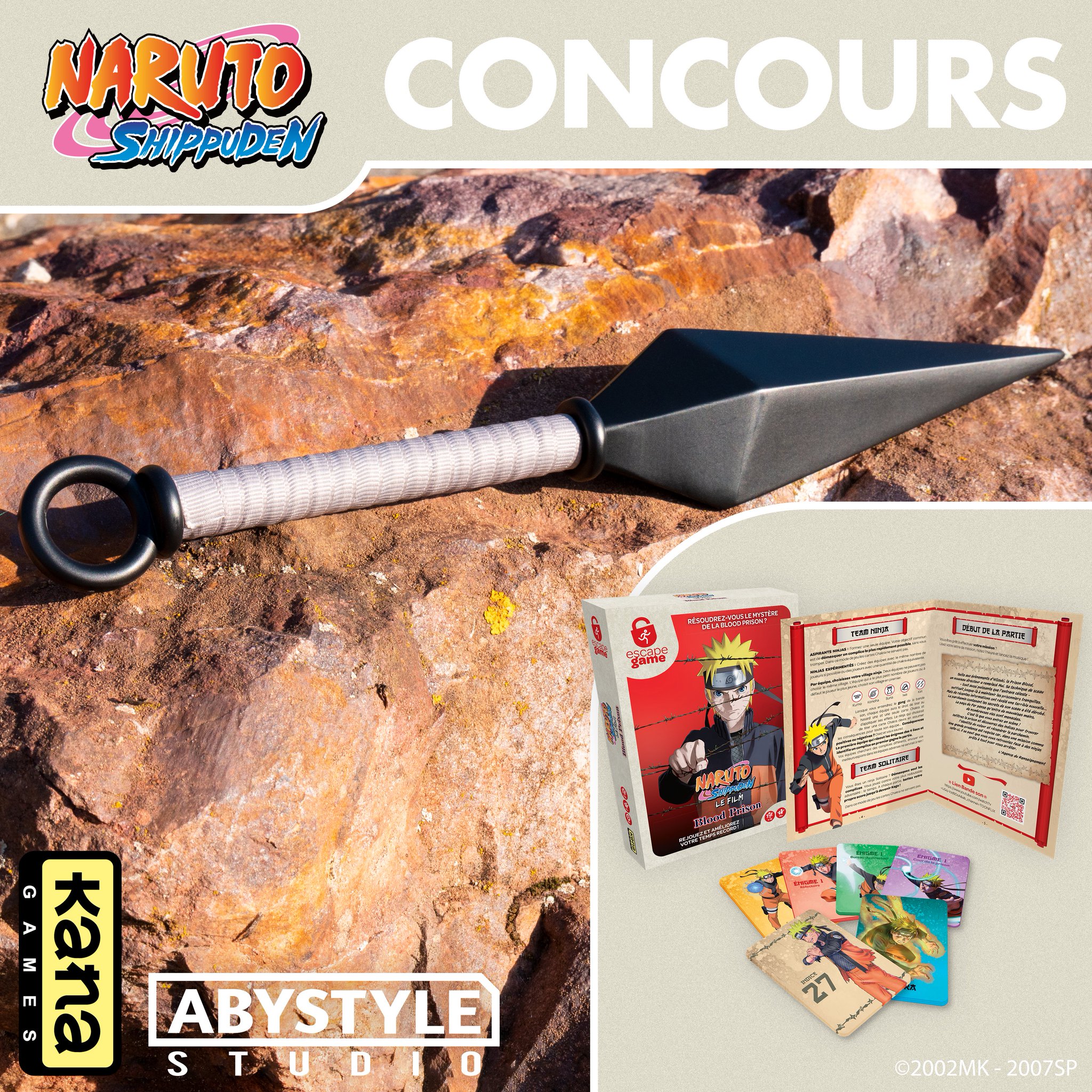 Jeu Editions Kana n°343119 pour gagner 1 réplique taille réelle et en métal d'un Kunai + 1 Escape game Naruto