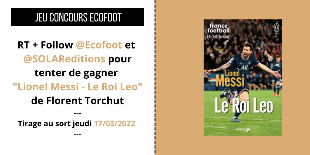 🎁 JEU CONCOURS 🚨 👉 On vous fait gagner un exemplaire de l'ouvrage "Lionel Messi - Le Roi Leo" de Florent Torchut Pour y participer : 1⃣ RT le tweet 2⃣ Follow @Ecofoot & @SOLAReditions 👉 Le gagnant sera désigné le 17.03.2022 Bonne chance à tous ! 🍀