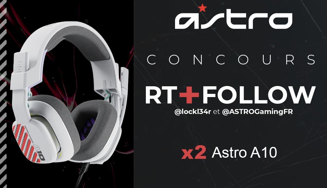 🔥CONCOURS 🔥 A l'occasion de la sortie du tout nouveau casque A10 d'ASTRO Gaming, on te propose d'en gagner 1 et d'en faire gagner 1 à ton mate ! Pour participer : - RT ce tweet. - Follow @ASTROGamingFR et @Lockl34r. - Tagge ton mate qui doit aussi gagner son A10. TAS : 22/03