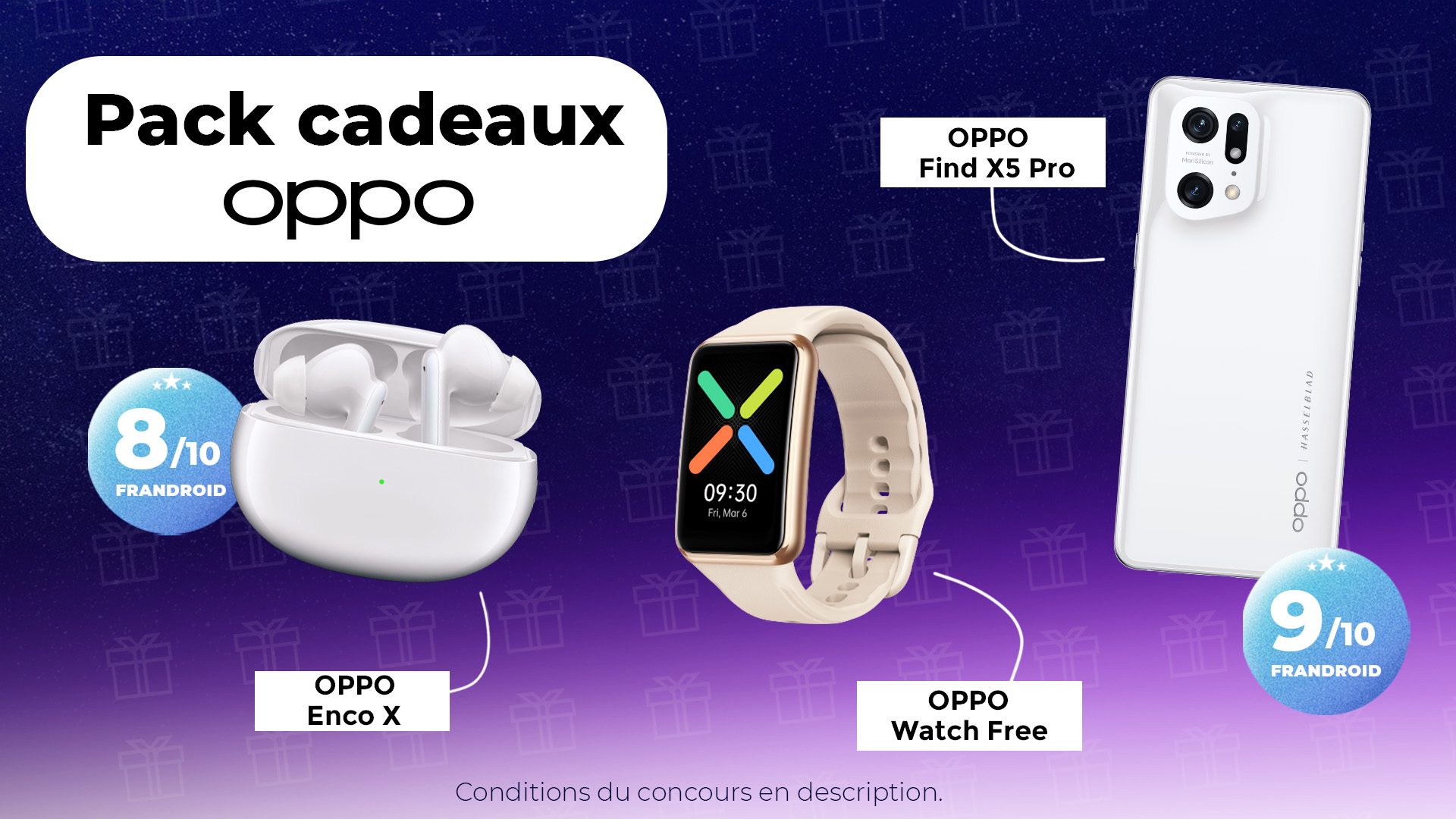 • 1 smartphone "Oppo Find X5 Pro" + 1 montre "Oppo Watch Free" + 1 paire d'écouteurs "Oppo Enco X"
