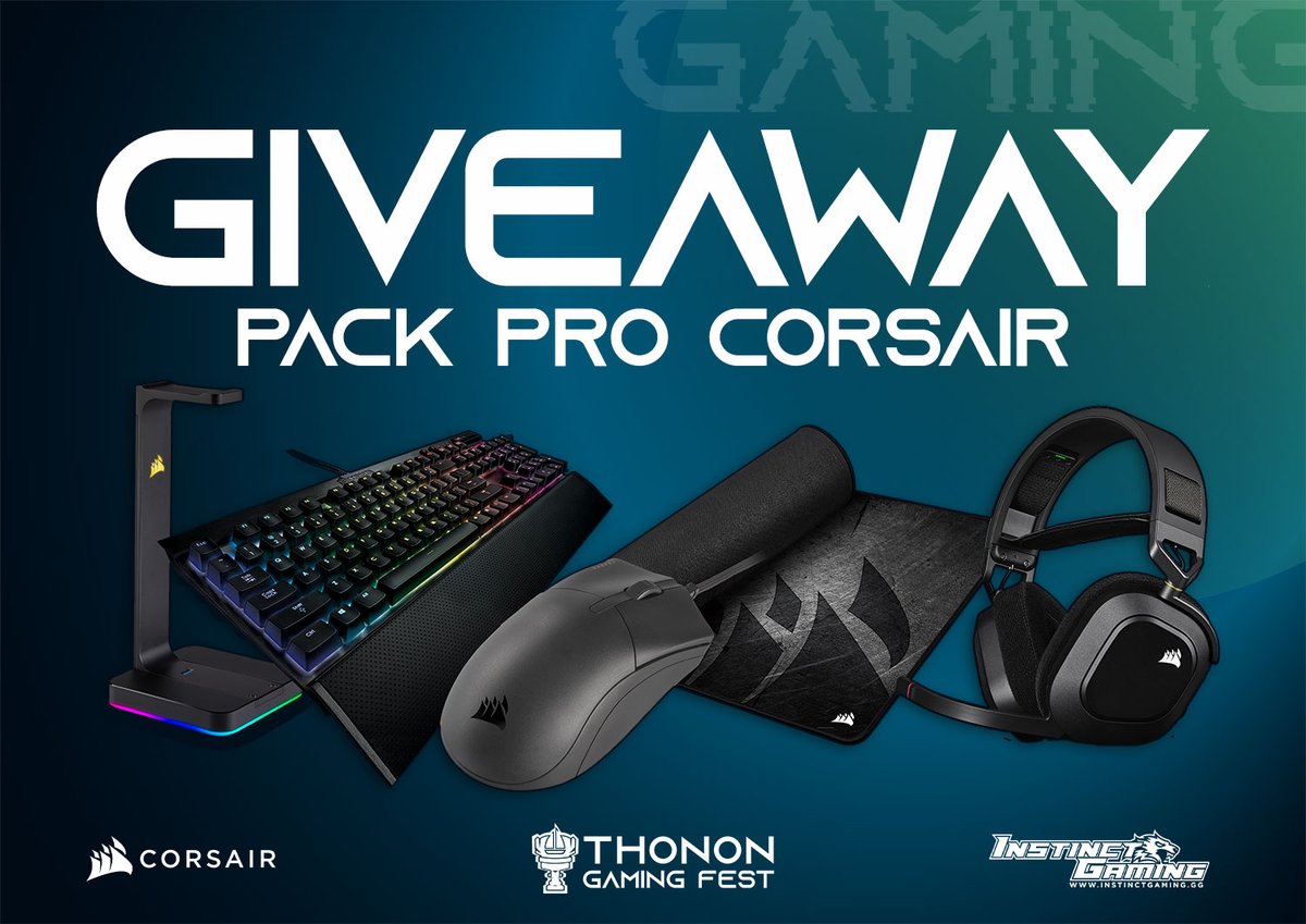 🎁 Viens au #TGF équipé comme un pro 💥 😎 500€ de matos à gagner : clavier, souris, tapis, casque, support casque (détail en com.) Pour participer : Retweet ce post + Follow @CORSAIRFRA, @InstinctGam, @ThononGameFest 📍 Annonce du vainqueur le 28/03, 21h GL all 😁