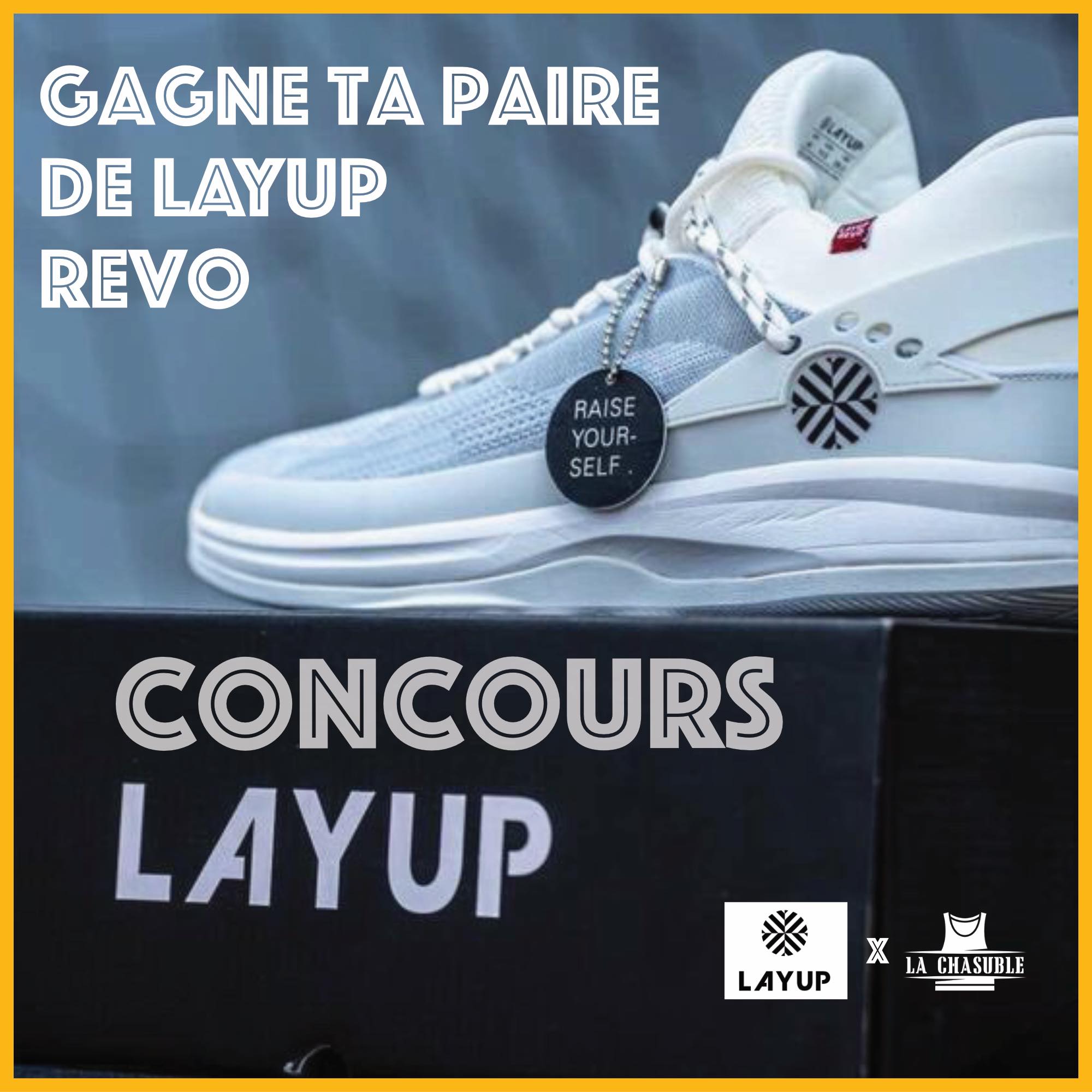 [ #CONCOURS ] 🎁 Layup et LaChasuble vous font gagner une paire de chaussures de basket Layup Revo Pour participer : - RT ce tweet - Suivre @Layup_officiel et @lachasuble_fr 🗓️ TAS le Mardi 12 Avril 🍀🍀 Double tes chances en participant sur notre compte instagram (lien⬇️)