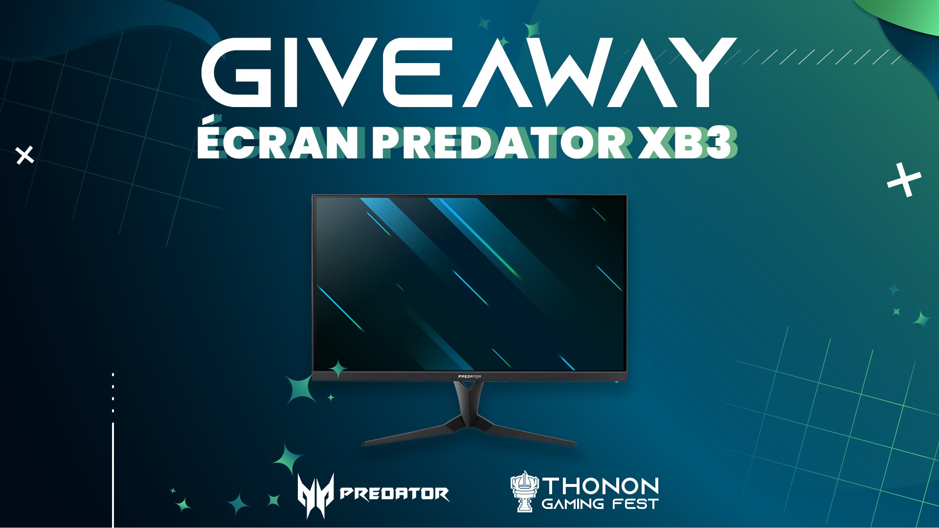 • 1 écran PC Predator XB3 valeur 500 €
