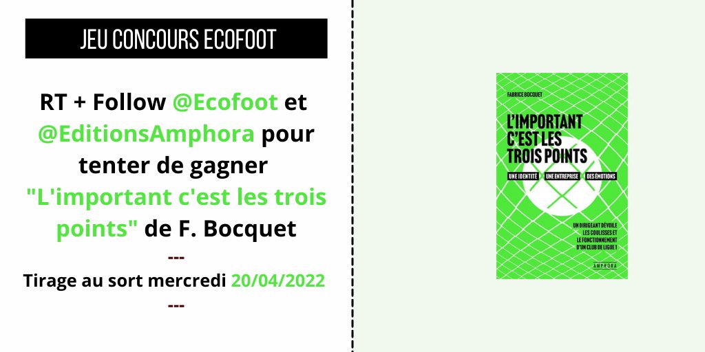 🎁 JEU CONCOURS 🚨 👉 On vous fait gagner un exemplaire de l'ouvrage "L'important c'est les 3 points" de Fabrice Bocquet Pour y participer : 1⃣ RT le tweet 2⃣ Follow @Ecofoot & @EditionsAmphora 👉 Le gagnant sera désigné le 20.04.2022 Bonne chance à tous ! 🍀