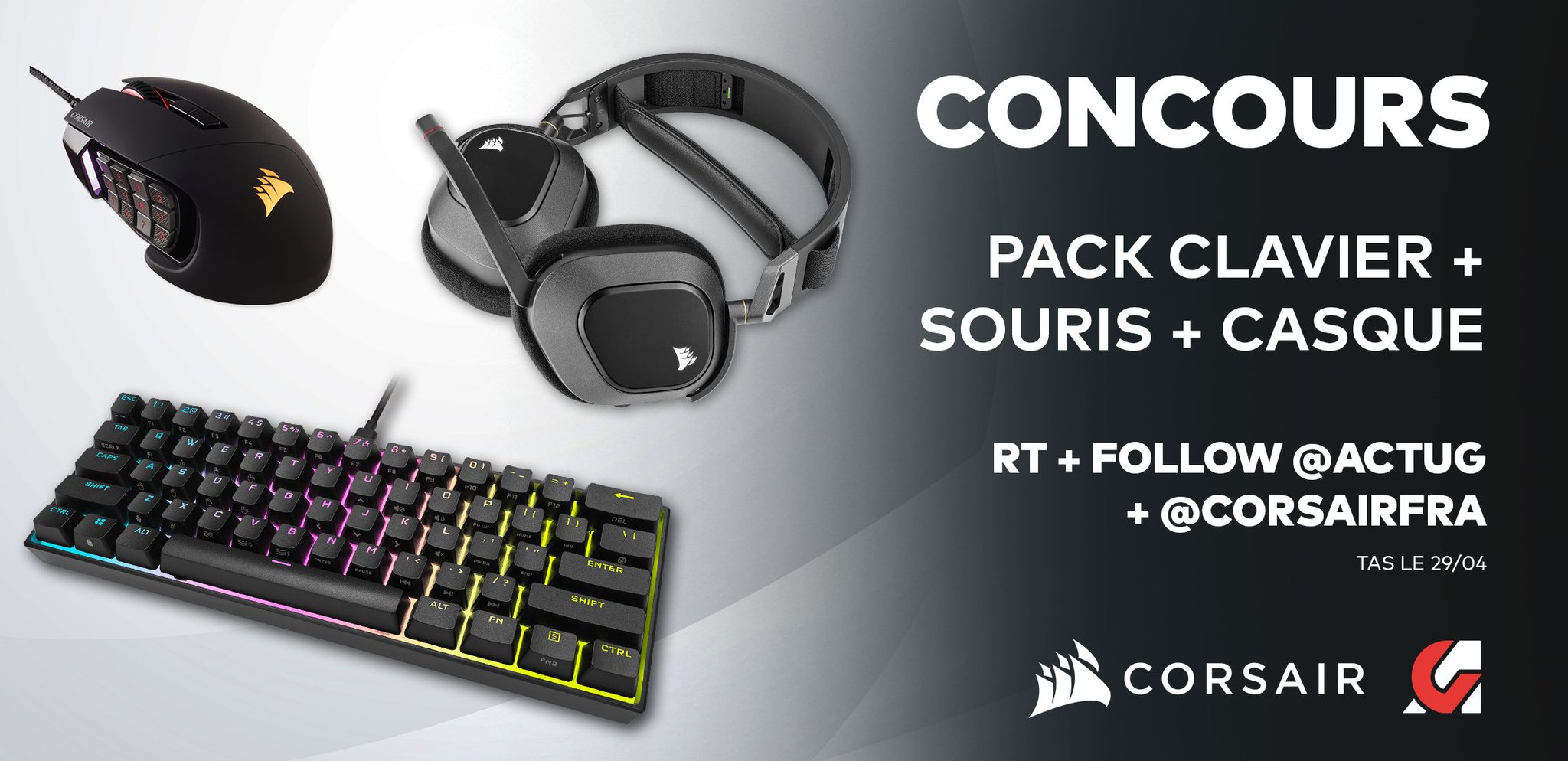 • 1 lot Corsair composé de 1 clavier + 1 souris + 1 casque audio