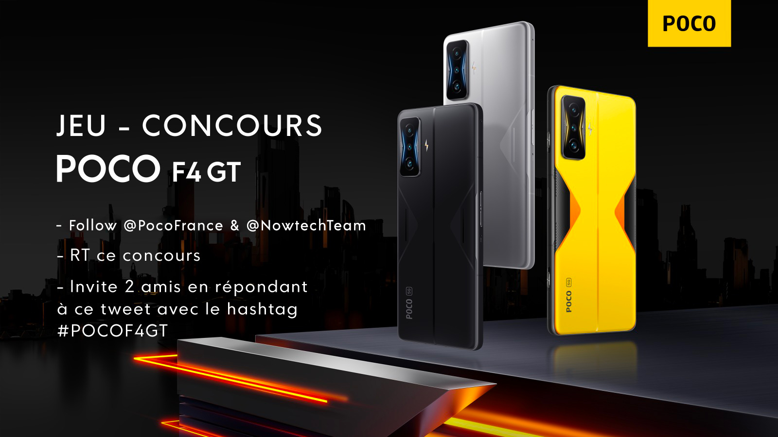 🎁 Concours ! 🎁 À l’occasion du lancement de leur nouveau smartphone, le POCO F4 GT 5G, on vous régale et vous permet d’en gagner un ! 🔥 👉 Pour participer, Il suffit de like + RT + suivre les comptes @POCOFrance & @NowtechTeam 🔥 à vous de jouer 🔥 #POCOF4GT