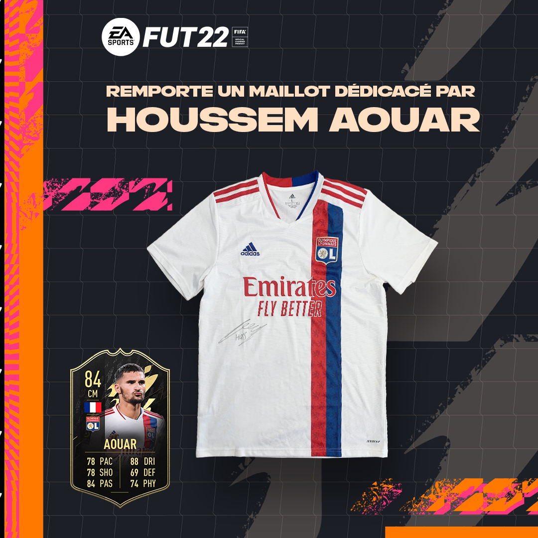 [🎁Jeu concours🎁] 🔥A l'occasion de son défi en Clash d'Equipe dispo actuellement dans #FUT, tentez de remporter un maillot de l'OL dédicacé par @HoussemAouar😁! 1⃣ Follow @EA_FIFA_France & @EAFrance 2⃣ #RT ce tweet T.A.S le 11/04 📜Reglement👉https://t.co/uJ194PaNDd #FIFA22
