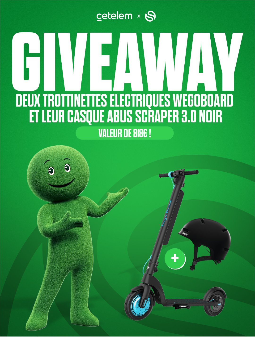 • 2 lots composés de 1 trottinette électrique + 1 casque valeur 820 €
