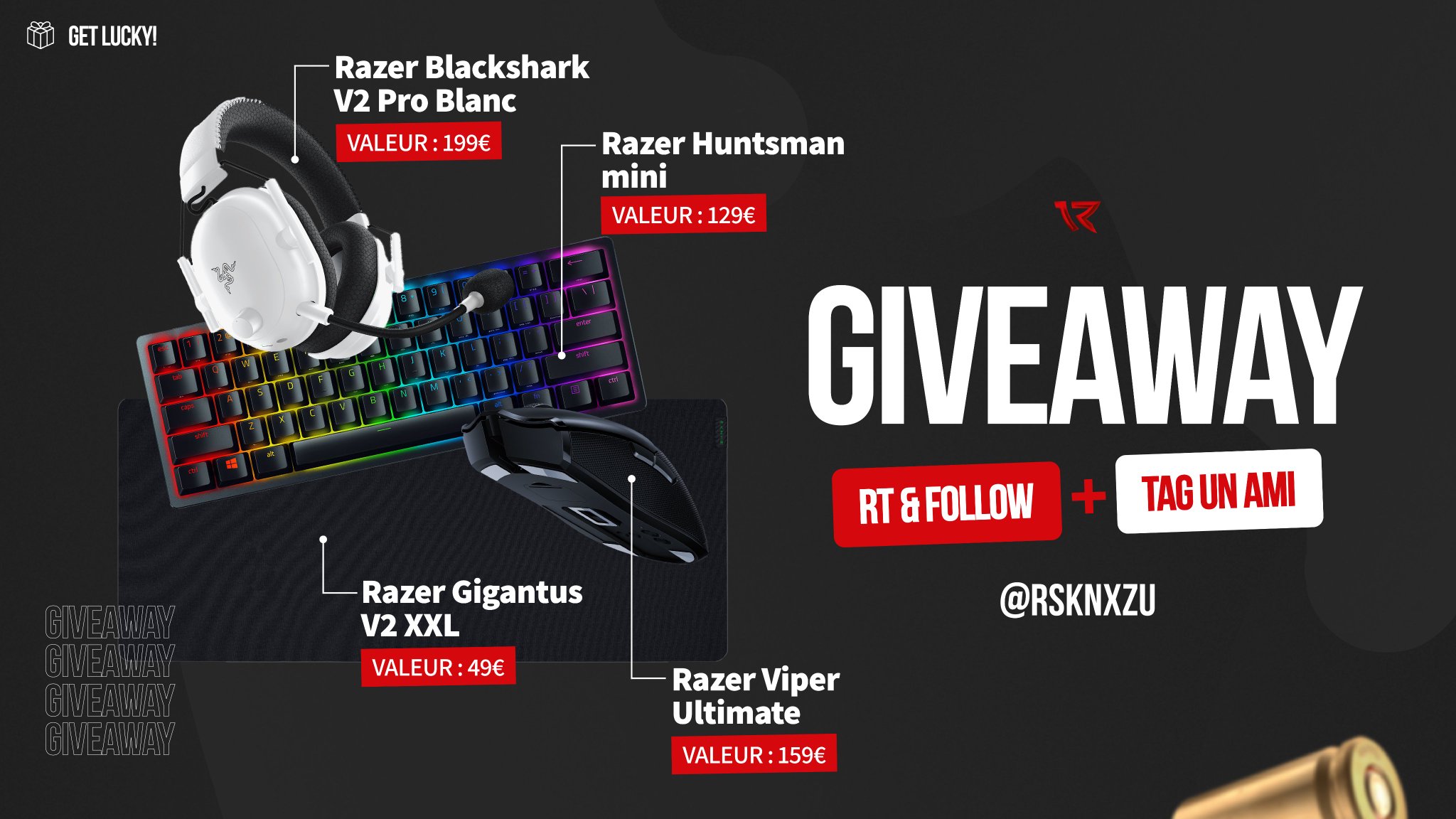 • 1 set up Razer complet composé de 1 souris + 1 tapis + 1 clavier + 1 casque valeur 500 €