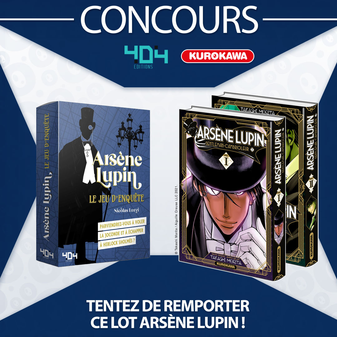 #Concours Arsène #Lupin @Kurokawa et @404editions 🎩 Remporte un lot #mangas #ArsèneLupin t1-2 + "Arsène Lupin : le jeu d'enquête" Pour participer : 📍 Abonne-toi à @404editions et @Kurokawa 📍 Retweete ce post ➡ BONUS : tague 2 amis en commentaire. TAS le 31/05/2022