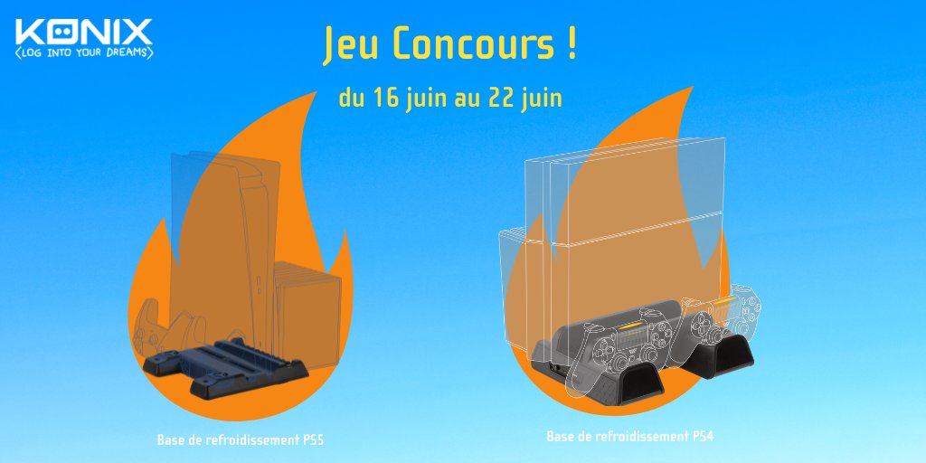 [CONCOURS] En cette période de forte chaleur on vous fait gagner une base de refroidissement #PS4 ou #PS5 ! Pour participer : RT ce post, follow notre compte et tag un de tes amis en commentaire ! TAS le 22 juin Bonne chance ! ☀️ #Konix #Giveaway #Giveaways #canicule