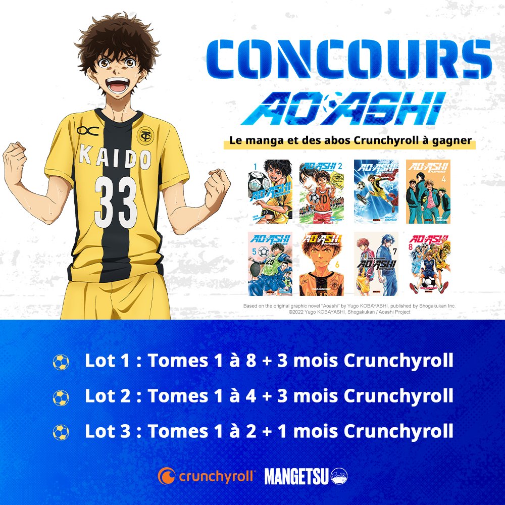 • 1 lot composé des 2 premiers tomes du manga "Ao Ashi" + 1 mois d'abonnement Crunchyroll