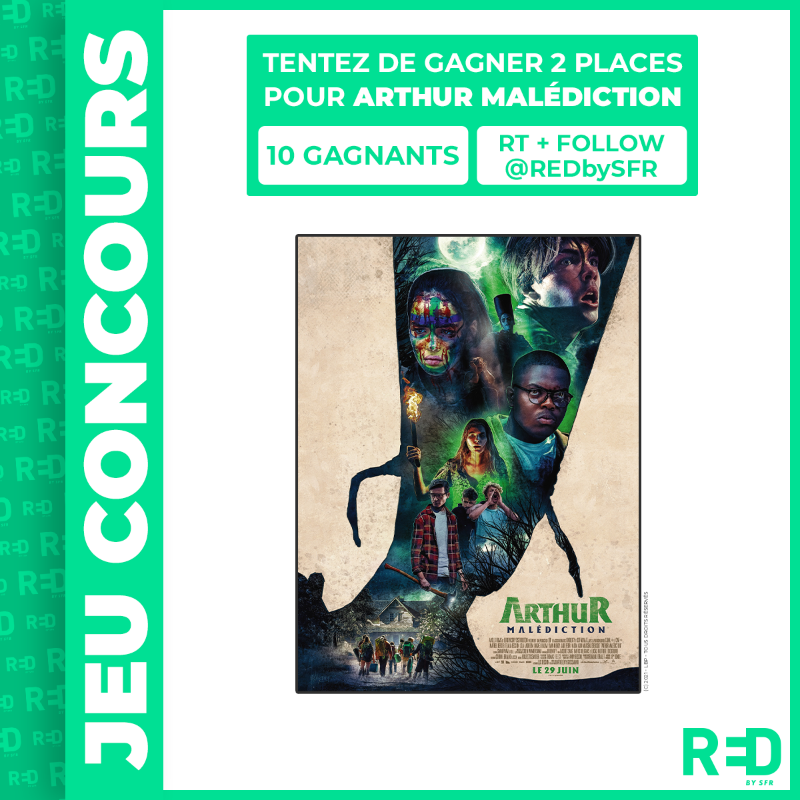 [#CONCOURS] À l'occasion de la sortie du film #ArthurMalédiction, tentez de gagner des places pour aller voir le film ! Pour cela rien de plus simple, RT + Follow @REDbySFR . 🎬 Retrouvez Arthur Malédiction le 29 juin au cinéma. Fin du jeu et tirage au sort le 29/06 à 14h.