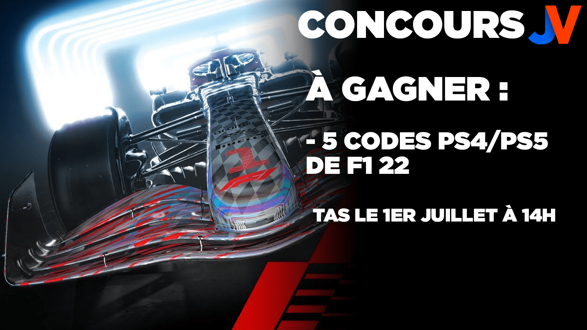 🏆🎮🎁 CONCOURS F1 22 🎁🎮🏆 Vroum vroum ! Pour la sortie du jeu le 1er juillet, on vous fait gagner 5 codes PS4/PS5 de F1 22 ! Devenez le meilleur pilote et écrasez vos adversaires en ligne ! 🎁 RT+Follow @JVCom 🎁 🏆 5 gagnants 🏆 TAS le 01/07: https://t.co/wYTcddQaZr